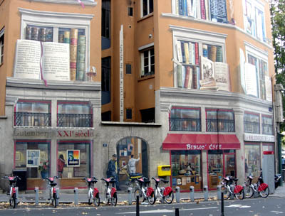 Le mur des écrivains et la station Vélo’v.