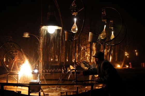 La compagnie Carabosse est composée de 10 membres et aime jouer avec la ferraille, le feu, l’air et l’eau. Elle va nous proposer des rencontres avec… une fleur géante… des kiosques à musique (et à chants)… des fantômes vêtus de marcels (pourvu qu’ils n’aient pas froid !) parmi une foule de monocyclistes, d’automates, de funambules… Ils se nomment les jardiniers du feu.